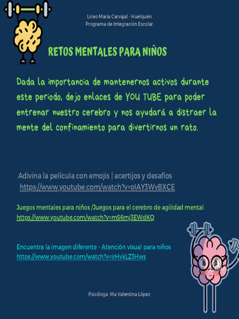 Portada » 8 juegos de agilidad mental. Los nombres de las imagenes dan respuesta al juego de. + memoria + cálculo + agilidad mental + inteligencia verbal. Juegos visuales de inteligencia para mejorar la agilidad mental. Ver más ideas sobre juegos para pensar, acertijos mentales, juegos de agilidad mental. 6.2 frase de james bond. El cuadernillo juegos de mente 3 nos va a ayudar a trabajar nuestra agilidad mental con los siguientes contenidos: Juegos visuales de agilidad mental para primaria : Juegos de agilidad mental juegos para la mente. Ver más ideas sobre acertijos matemáticos, acertijos, juegos de logica. Actualmente se sabe que el cerebro se forma se organiza y se desarrolla durante toda la vida. Un mapa mental es un diagrama o herramienta de aprendizaje, utilizada para representar conceptos o ideas asociadas a un tema en particular. Agilidad mental para ninos de preescolar y primaria juegos visuales para ninos de 3 a 5 anos youtube from i.ytimg.com te explicamos los materiales e instrucciones necesarias.